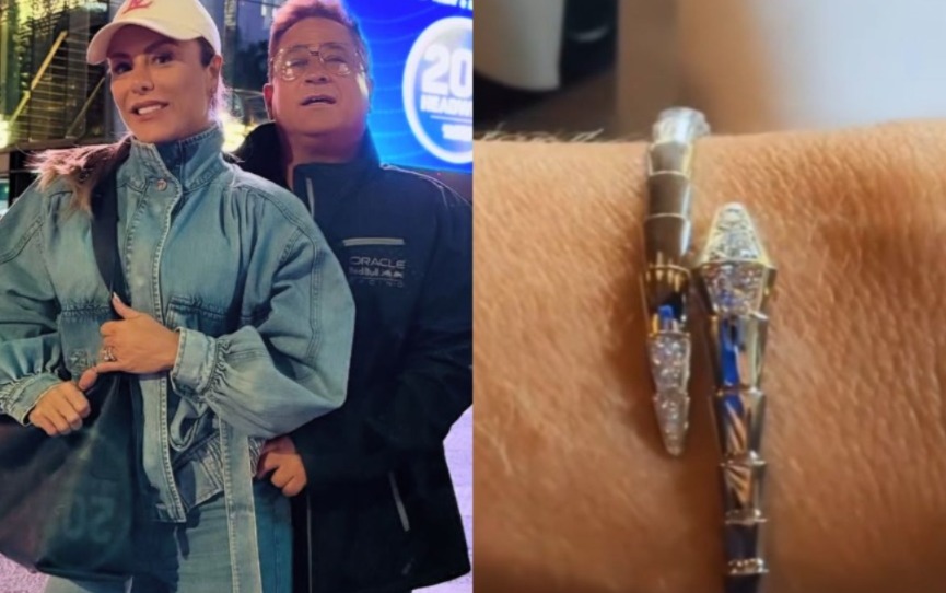 Esposa do cantor sertanejo exibiu a pulseira sofisticada em suas redes sociais Enquanto curtiam alguns dias juntos nos Estados Unidos, Leonardo decidiu presentear a esposa, Poliana Rocha. Em suas redes sociais, ela exibiu o mimo especial: uma pulseira de uma grife italiana, cujo valor pode variar entre R$80 mil e R$600 mil, dependendo do modelo e, claro, da quantidade de diamantes. Através dos stories, Poliana exibiu seu mimo: uma pulseira em formato de serpente de uma volta, cravejada com pavê de diamantes na cabeça e também na cauda, da grife Bvlgari. No Brasil, não é possível encontrar o mesmo modelo à venda no site, já que o da empresária parece conter mais diamantes. No entanto, há uma versão semelhante disponível, que custa R$80 mil e é descrita como uma “mistura de estética pura, formas envolventes e charme cativante”. Os valores variam conforme a quantidade de voltas que a serpente faz no braço, além do número de pedras, e podem ultrapassar meio milhão de reais. Inclusive, outra pessoa que possui uma pulseira parecida é sua nora, Virginia Fonseca. Em suas redes sociais, a influenciadora digital e apresentadora já exibiu o mimo, além de outros acessórios luxuosos, como um relógio da mesma grife, também com uma serpente, avaliado em nada menos que R$110 mil.