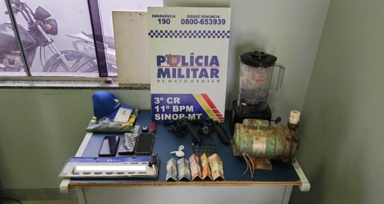 Ação rápida do 11º Batalhão e da Rotam impediu crime em andamento e garantiu a segurança das vítimas. Armas foram apreendidas e produtos roubados recuperados. Policiais militares do 11º Batalhão, com apoio das equipes da Ronda Ostensiva Tática Móvel (Rotam), frustraram uma tentativa de roubo com reféns a uma loja de materiais elétricos, na manhã desta quarta-feira (16), no município de Sinop (a 487 km de Cuiabá). Dois homens foram presos em flagrante e um terceiro suspeito morreu após confronto armado com os militares. Segundo informações do boletim de ocorrência, as equipes policiais foram acionadas para atender a um roubo em andamento em um estabelecimento comercial localizado no Setor Industrial da cidade. Ao chegarem ao local, os policiais se depararam com os suspeitos armados dentro da loja. Com a aproximação dos militares, dois dos criminosos fizeram funcionários reféns. Após o uso de técnicas de negociação, as vítimas foram liberadas e os bandidos se renderam, sendo imediatamente presos. Um terceiro integrante da quadrilha conseguiu fugir. Uma força-tarefa com apoio da Rotam foi iniciada para localizá-lo. O suspeito foi encontrado nas proximidades, mas ao ser abordado, reagiu atirando contra os policiais, que revidaram a agressão. Ele foi baleado, não resistiu aos ferimentos e morreu no local. Durante a operação, os policiais apreenderam três armas de fogo — dois revólveres, calibres .38 e .22, e uma pistola calibre 765 — além de um veículo utilizado pela quadrilha. Diversos pertences das vítimas foram recuperados. Os dois suspeitos presos foram encaminhados à delegacia, juntamente com o armamento e os materiais apreendidos, onde o caso foi registrado e será investigado pela Polícia Judiciária Civil.