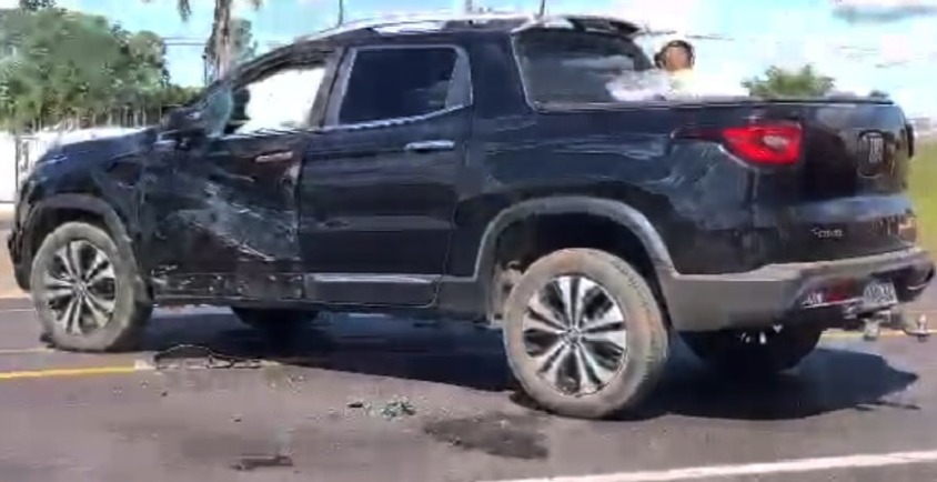 O acidente envolvendo a Fiat Toro preta e a Honda CG prata foi, hoje no início da tarde, em frente à alça de acesso da avenida Jonas Pinheiro, para a rodovia federal. O motociclista foi socorrido pela equipe de resgate da concessionária e encaminhado ao hospital regional. Ele estaria em estado grave. A versão informada pelo condutor da picape é que ele trafegava pela Jonas Pinheiro, e ao acessar a rodovia, colidiu com a moto, que seguia pela BR-163. Com o impacto, o carro teve a lateral esquerda amassada, janela quebrada. Já a moto teve a frente danificada, danos no guidão, tanque amassado, carenagem e farol quebrados.