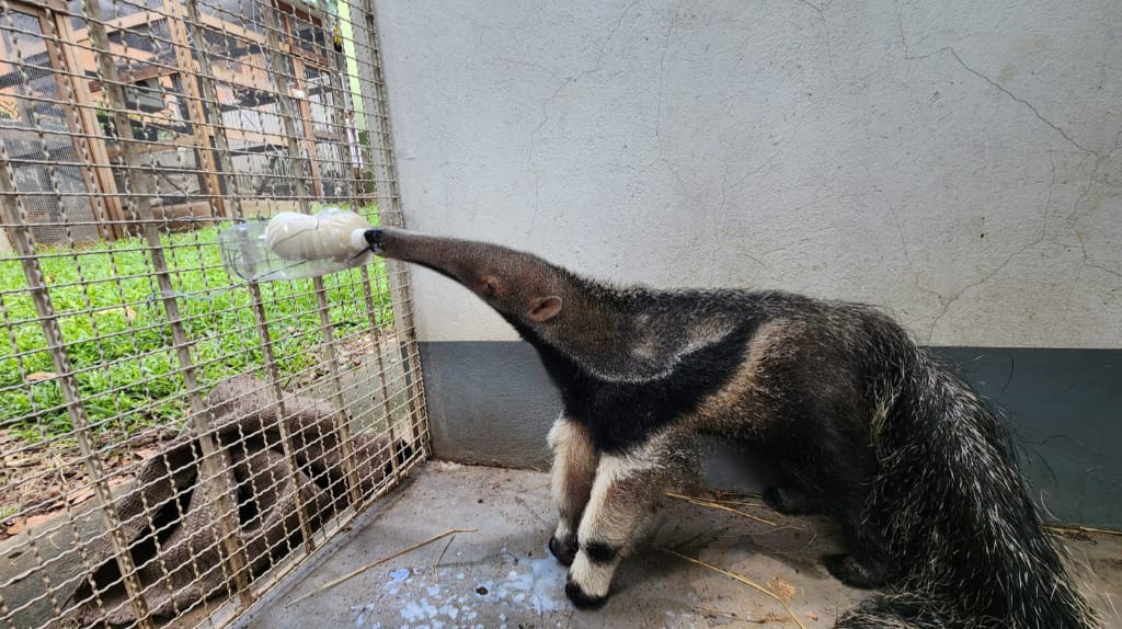 Tamanduá que sobreviveu à queimada em MT entra em fase de readaptação para voltar à natureza