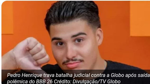 A disputa judicial entre a TV Globo e Pedro Henrique Espíndola, ex-participante do BBB 26, ganhou um novo capítulo. A emissora passou a cobrar uma multa de R$ 1,5 milhão após o vazamento do contrato do reality, enquanto a defesa do ex-brother afirma que não foi notificada oficialmente sobre a penalidade.