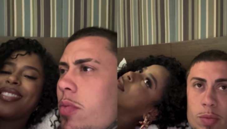 O casal começou o vídeo dando play na gravação obtida pelo portal LeoDias e assim que o cantor ouviu a chefe de enfermagem do local o chamando de “Máscara” ele brincou fingindo que estava chorando, enquanto Lorena caiu na risada.