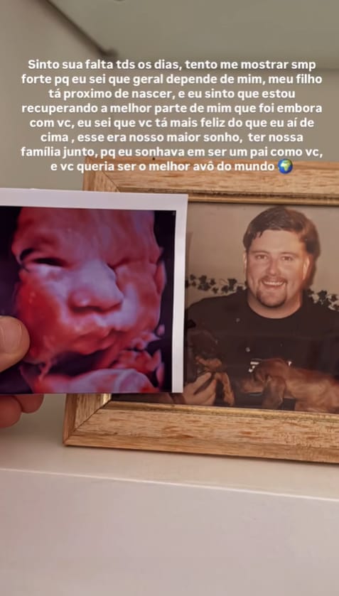 MC Daniel homenageou o falecido padrasto por meio de uma publicação no Storie do Instagram. O cantor, que está à espera do primeiro filho com a influenciadora e empresária Lorena Maria, compartilhou um texto emocionante com seus seguidores. Além do desabafo, o artista postou uma foto em que segura uma imagem de ultrassom ao lado de um retrato do pai de consideração.