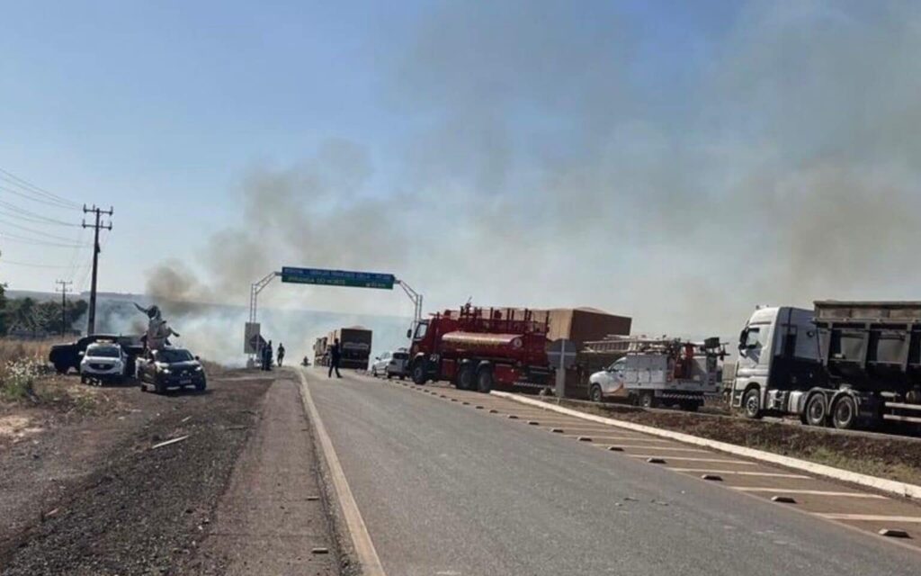 Ao chegar ao local, a guarnição constatou que o fogo atingia ambos os lados da rodovia. Além do caminhão dos bombeiros, caminhões-pipa de fazendas vizinhas, da prefeitura e a Defesa Civil trabalharam para acabar com os focos